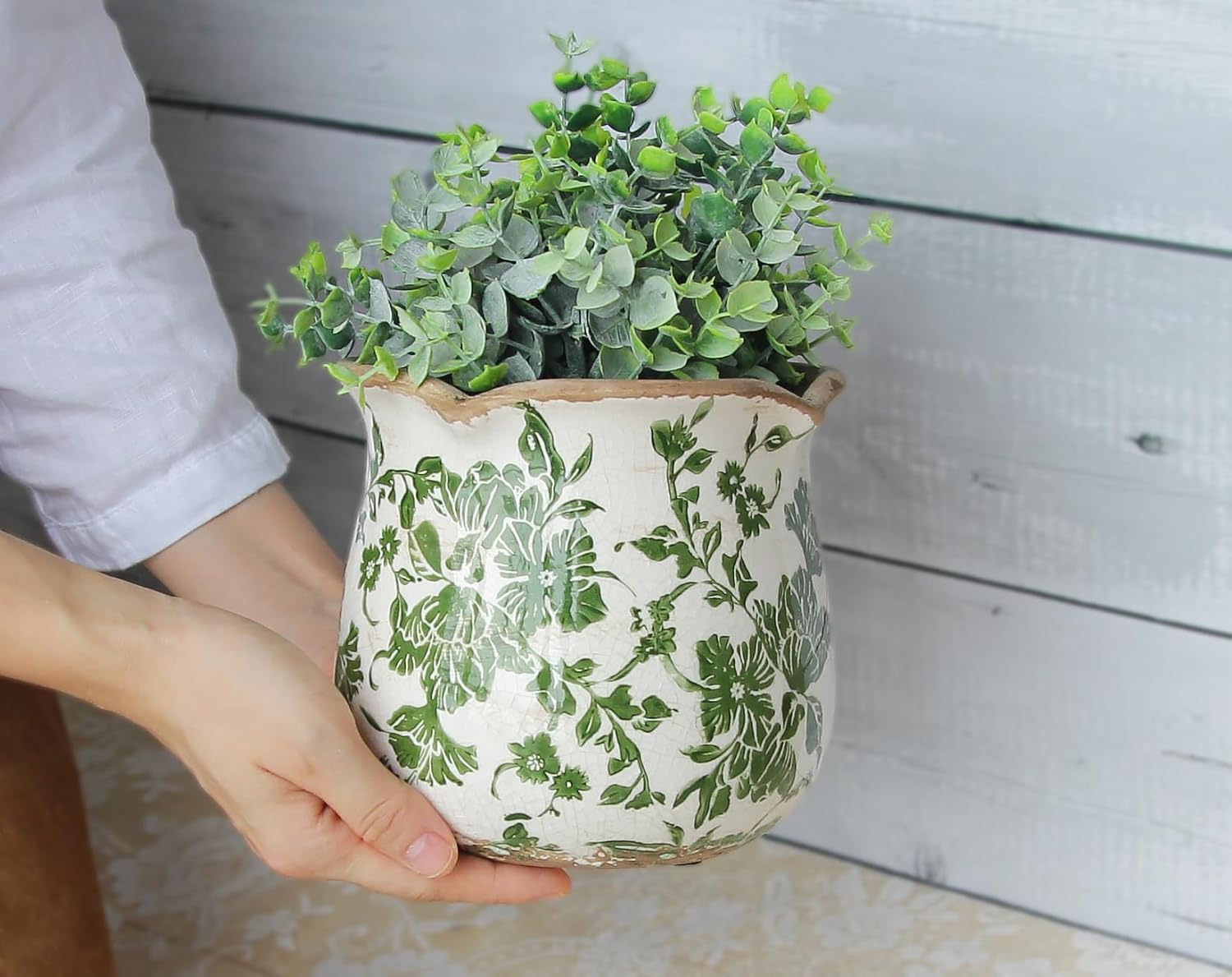 ⭐️⭐️⭐️⭐️⭐️ “Absolutely love the vintage look of this planter. The crackle glaze finish is stunning, and it fits perfectly with my home decor. My plants have never looked happier!” – Emma R.