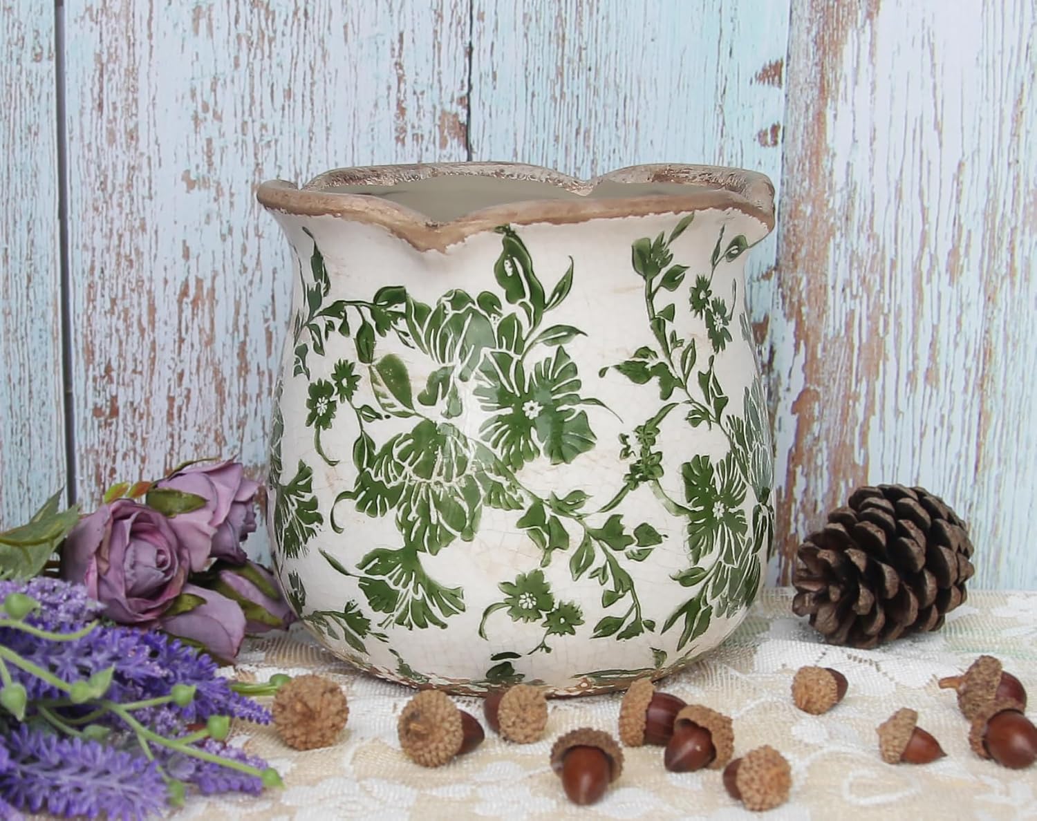 – **Elegant Design:** This ceramic pot features a crackle glaze finish that adds a unique, vintage appeal to any room. Its timeless green hue seamlessly complements a variety of interior styles, making it a versatile addition to your decor.